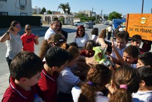 4 Ekim Dünya Hayvanları Koruma Günü nedeniyle Yakın Doğu Koleji Ortaokulu Onur Kurulu öğrencileri LTB’ye sokak hayvanları için 350 kilo kuru mama bağışında bulundu. LTB Başkanı Mehmet Harmancı’nın da katıldığı bağış etkinliğinde Harmancı öğrencilerle sohbet ederek, sorularını cevapladı. LTB Başkanı Mehmet Harmancı ayrıca Yakın Doğu Koleji öğrencilerine LTB Fidanlığı’nda bulunan ve hizmet vermek için uzun bir süredir T izni bekleyen Lefkoşa Gezi Treni hakkında bilgi verdi. Başkan Harmancı, yurt dışında pek çok örneği bulunan ve Lefkoşa Surlariçi bölgesine her açıdan katkı sağlayacak Gezi Treni’nin Türkçe ve İngilizce ses kayıtları ile 4000 adet broşürünün hazır olduğunu fakat hizmet vermek için üç ayı aşkın süredir T izni beklendiğini belirtti. Öğrencilerin büyük beğeni gösterdiği trende Başkan Harmancı ile anı fotoğrafı da çektirildi.